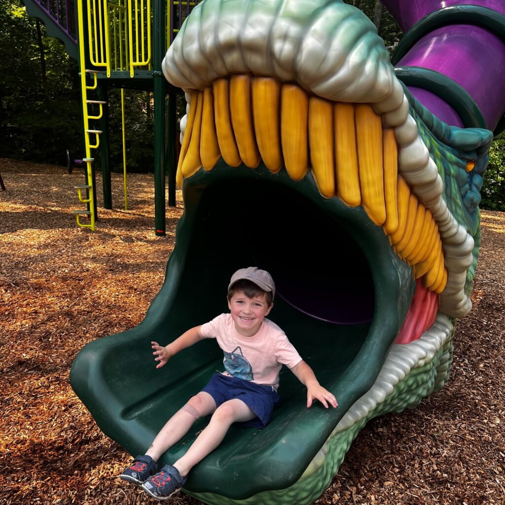 The best part is… the playground is designed so children of all ages can romp and play inside, outside, and every which way through jungle gyms of varying difficulties. From the 3-foot tall climbable Pachyrhinosaurus (thick-nosed lizard) skull to Connecticut’s first Evos® play system with a 3-D design that offers an infinite number of ways to enter, exit, and play throughout it.