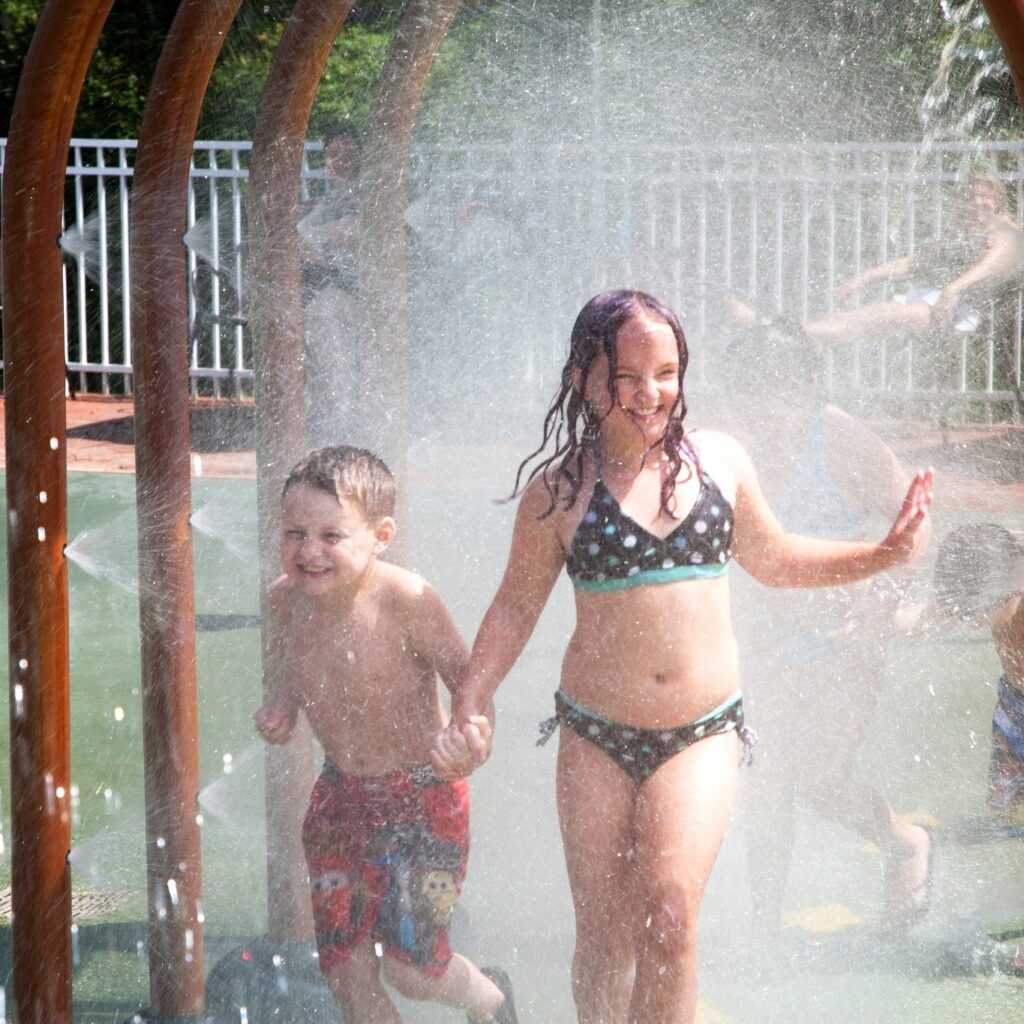 Our Splash Pad is designed with safe, toddler-friendly features so even the littlest ones can explore, play, and cool off with confidence. Slip-resistant footwear is mandatory!